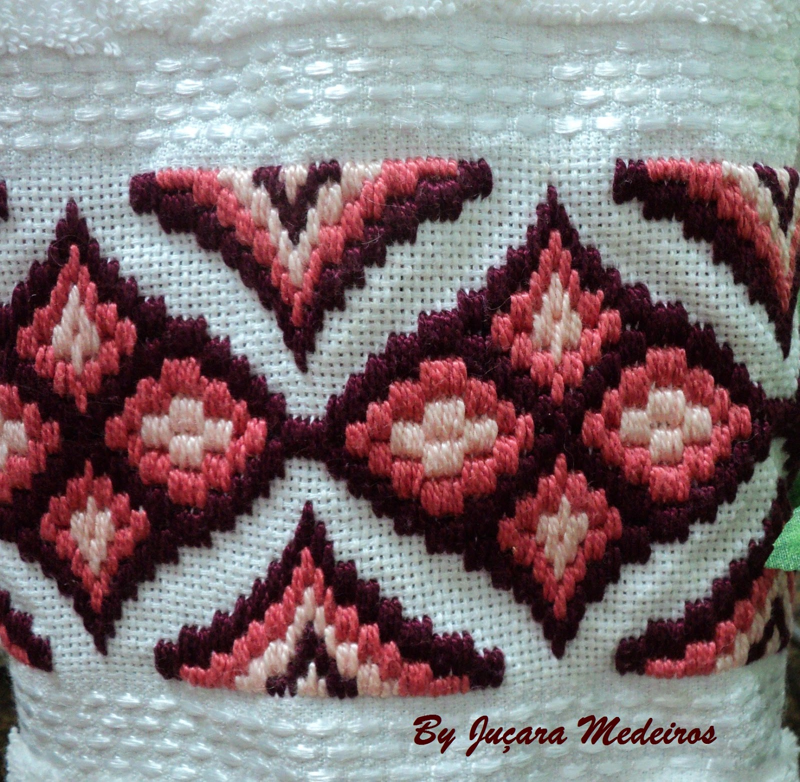 Toalha em ponto reto de lavabo, tudo bem colorido como eu gosto, amo cores.